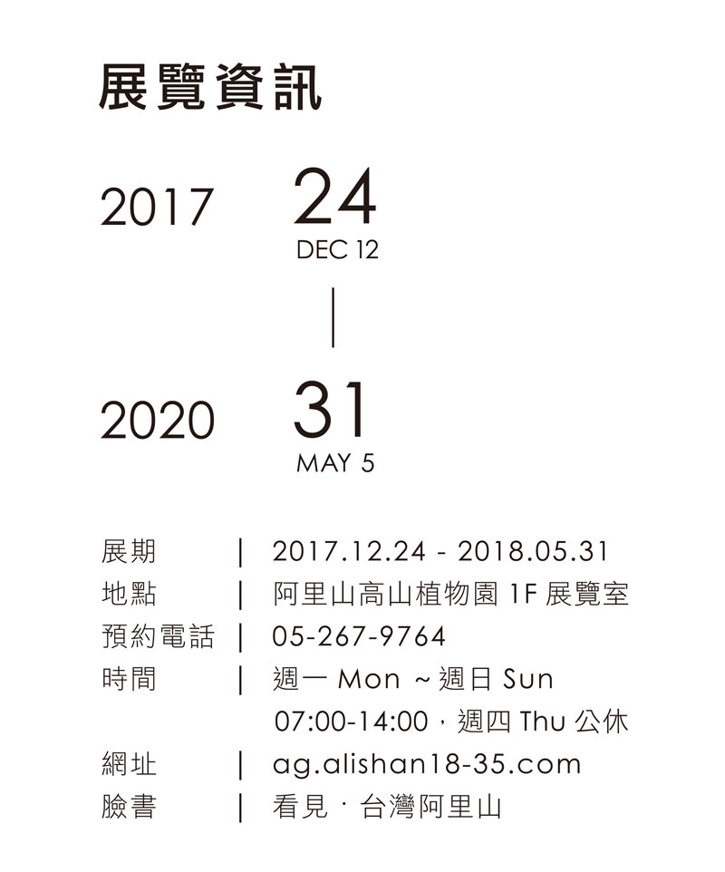 此次展出藉由阿里山作為傳遞的場所,將其多元豐沛的高山植物、富有草木清新之氣的高山茶葉、悠長的歷史文化,浸潤著關於台灣的模樣,而我們也將能一同感受於其中,使現場每個人更貼近策展理念;對於藝術家腦中的心靈世界或是筆下作品延展出的想像也會有更深一層的體認。