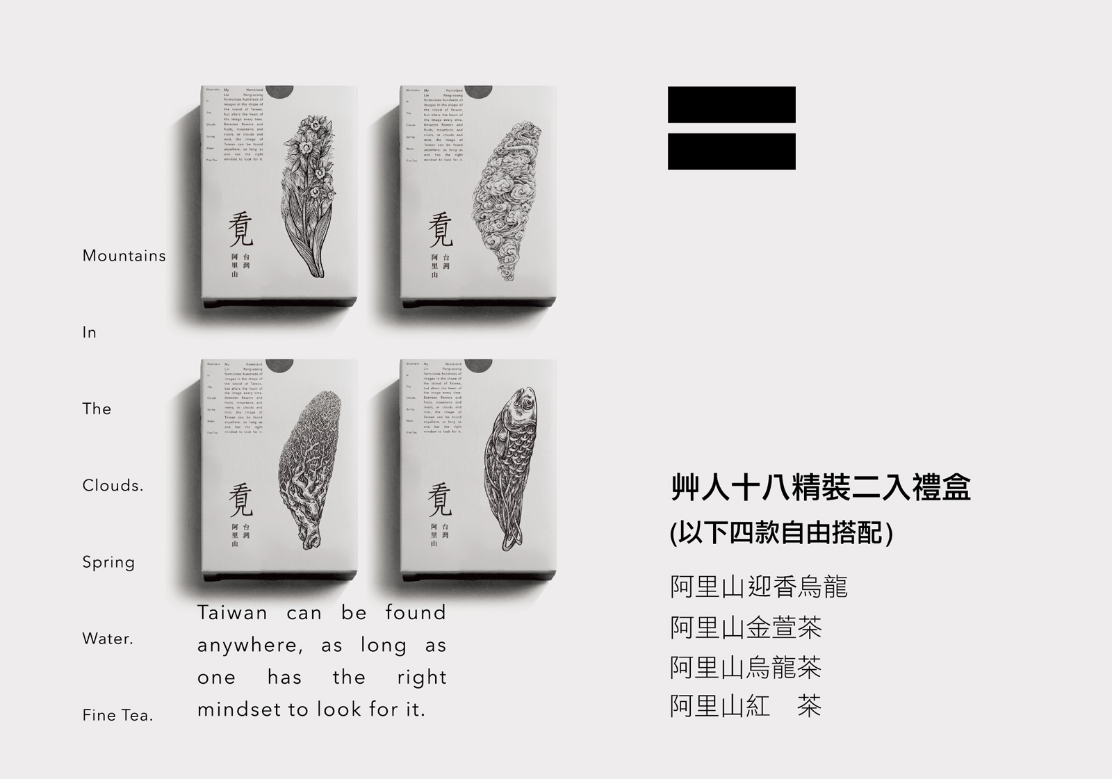 這裡的每幅台灣作品,背後都有一段故事和思念。這次藉由林磐聳老師的圖像開發作為茶葉包裝,釋放出一段想像空間,讓我們能看見兩種不一樣台灣,一種為林磐聳老師所繪製的台灣,而另一種則為我們所想像出的台灣。讓我們一起用想像建構出台灣的模樣。